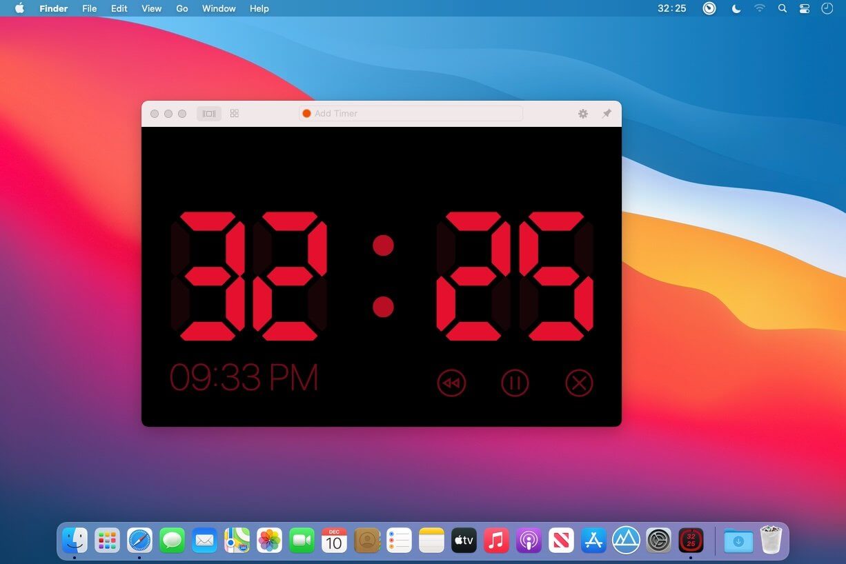 - Timer in the staus bar and on the dock icon