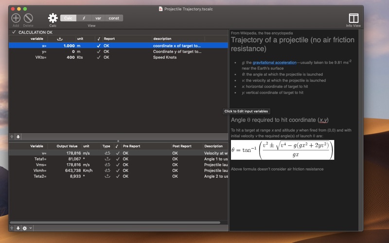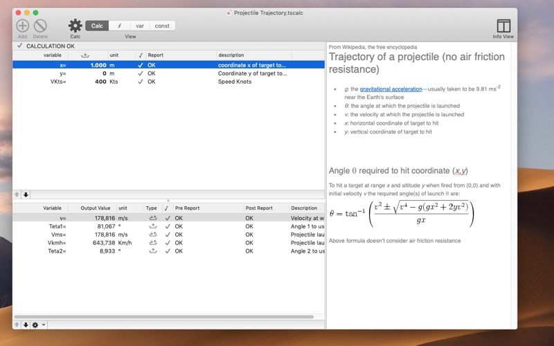 - A list of constants used by the equations (also auto inserted while you input equations)