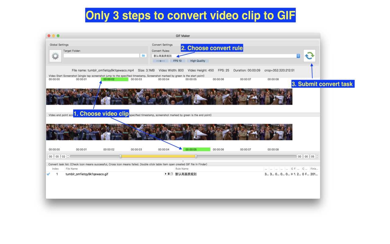 4. Support high quality conversion, output GIF has no quality loss.