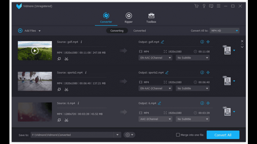Vidmore Video Converter supports converting all popular video formats. It allows you to export video files into a wide range of formats and devices. You can easily choose an output format and convert your videos with ease. New formats are constantly added, making the software more powerful.