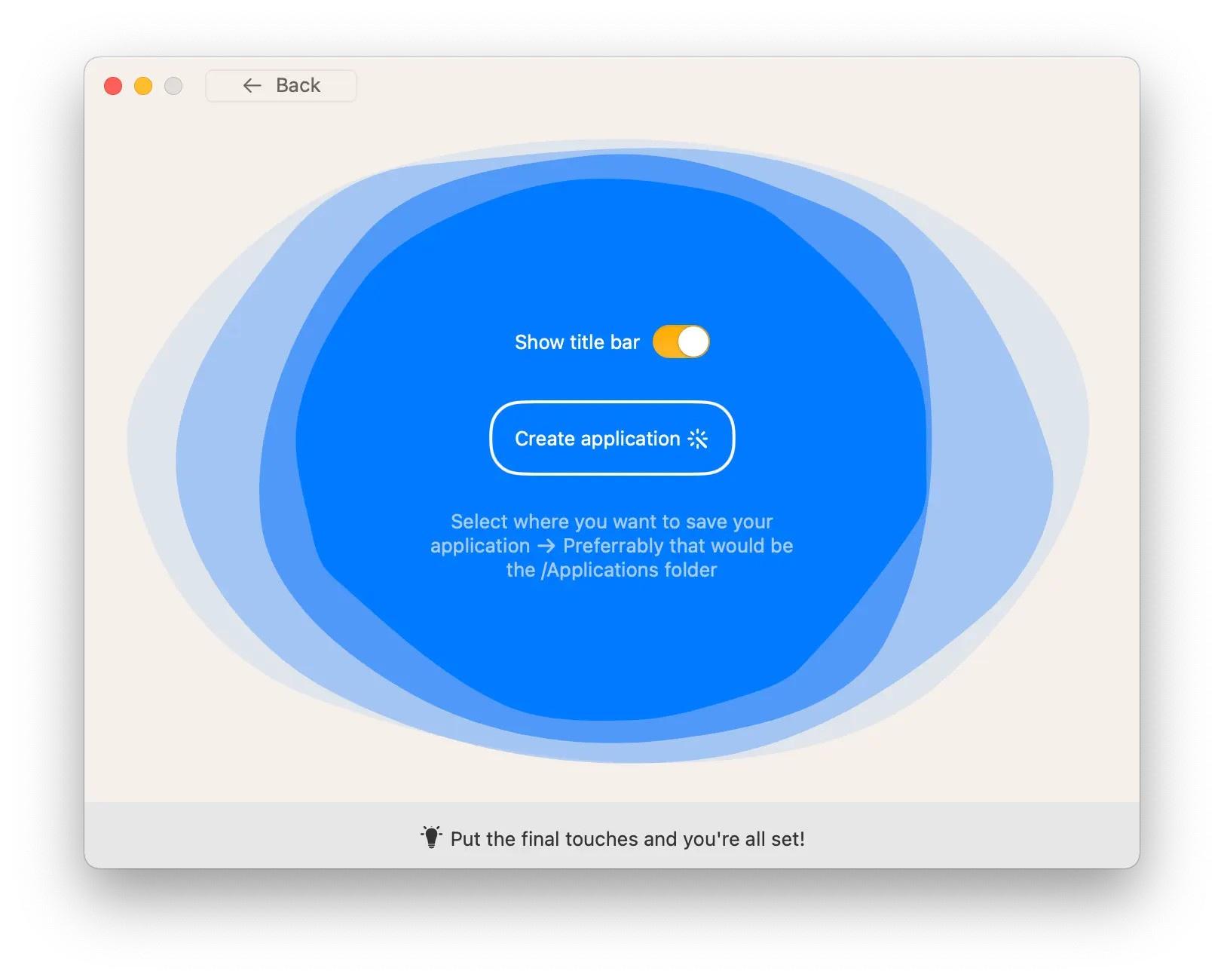 Turn any website into a beautiful Mac app. Just select the website you want, select your preferred options, …and you’re ready to go!