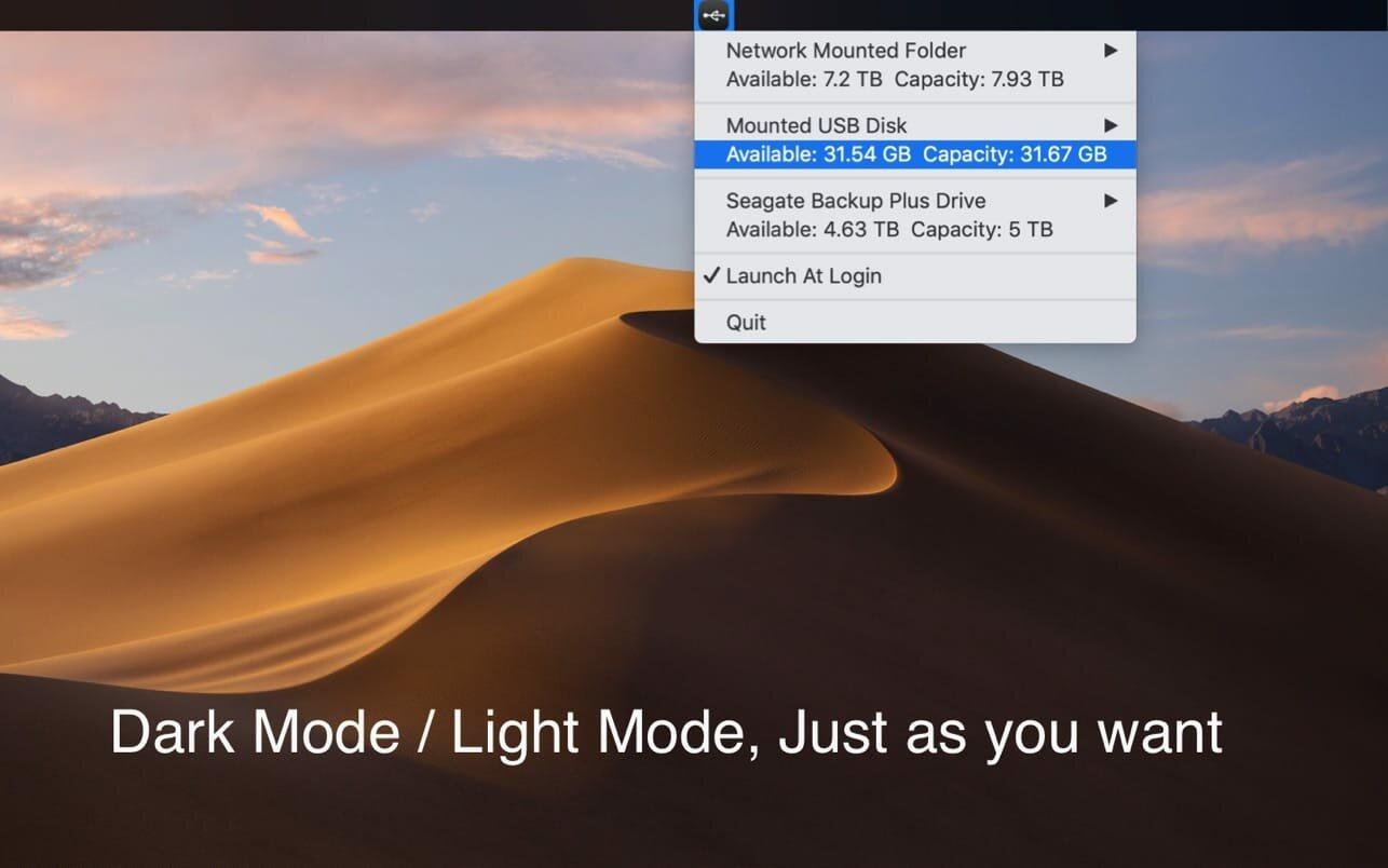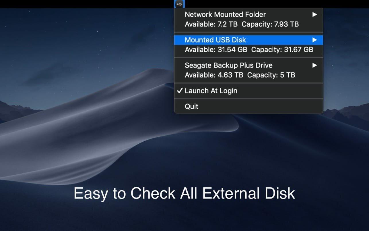 Monitor USB & Network Storage. X-Disk help user to check the external storage in a quick way. Plugin your USB disk or mount a network folder, then click the menu icon in the system status bar.